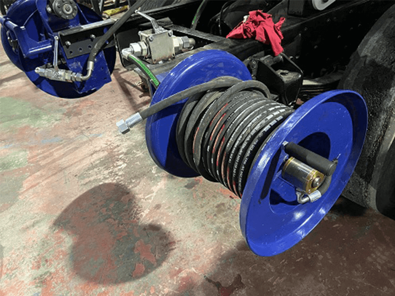 L'enrouleur de tuyau à montage latéral manuel/motorisé avec guide-tuyau automatique est composé d'un châssis en acier équipé d'un tambour métallique à rotation hydraulique ou manuel et du système de guide-tuyau automatique correspondant. Il est conçu pour enrouler des tuyaux, spécifiquement pour l'eau à haute pression, ayant des diamètres de ½ ". L'enrouleur de tuyau à montage latéral motorisé/manuel avec guide-tuyau automatique est destiné à être intégré dans des machines de nettoyage des égouts et des canalisations utilisant de l'eau à haute pression.